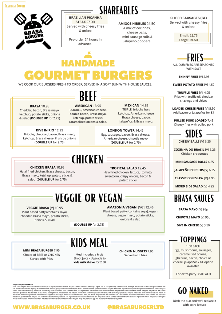 Welcome to Brasa Burger! It all began at a kitchen table in Haslemere in 2020 during the COVID-19. After 2 years working from a dark kitchen, we finally managed to open our eat-in restaurant in Haslemere! Now in May2024 we are about to open our second brand in Clapham South.